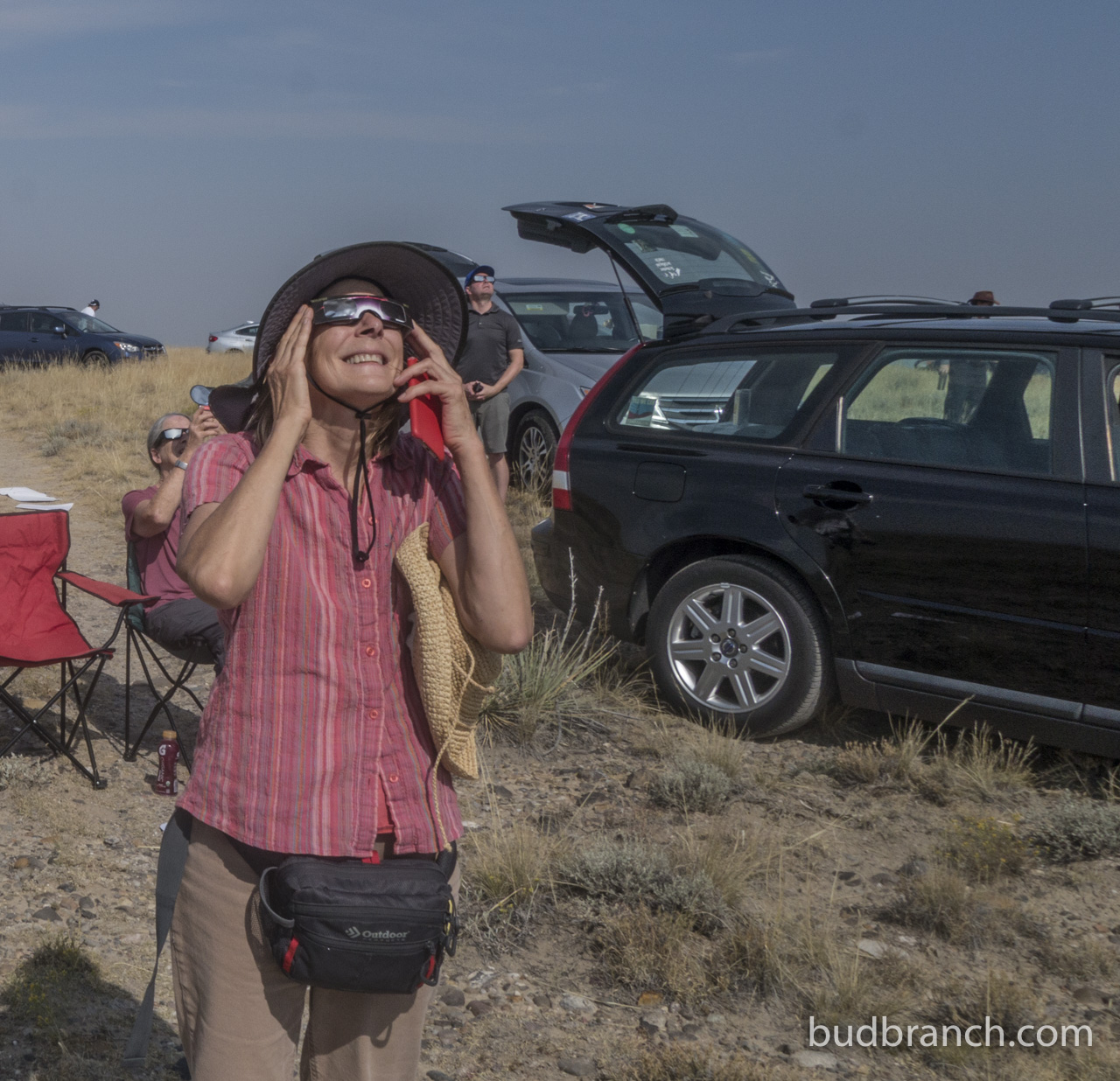 I clamped a GoPro to the rear hatch and made a time lapse video of our doings as totality approached, and after – here it is (totality happens about 9 seconds in…):